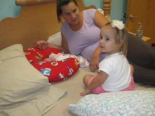 He is so cute! Congratulations!!! Eve looks adorable too. Wyatt wouldn't touch Waylon for days. She's going to be a great big sister.
